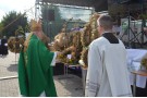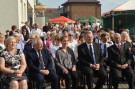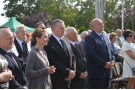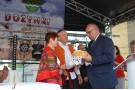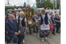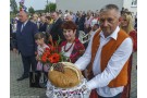 Starostowie dożynek - pani Krystyna Krupa i pan Dariusz Szakowski, zgodnie z tradycją, uroczyście wręczyli gospodarzowi gminy - Wójtowi Henrykowi Brodowskiemu chleb z tegorocznych zbiorów, którym podzielił się ze wszystkimi obecnymi na uroczystości.